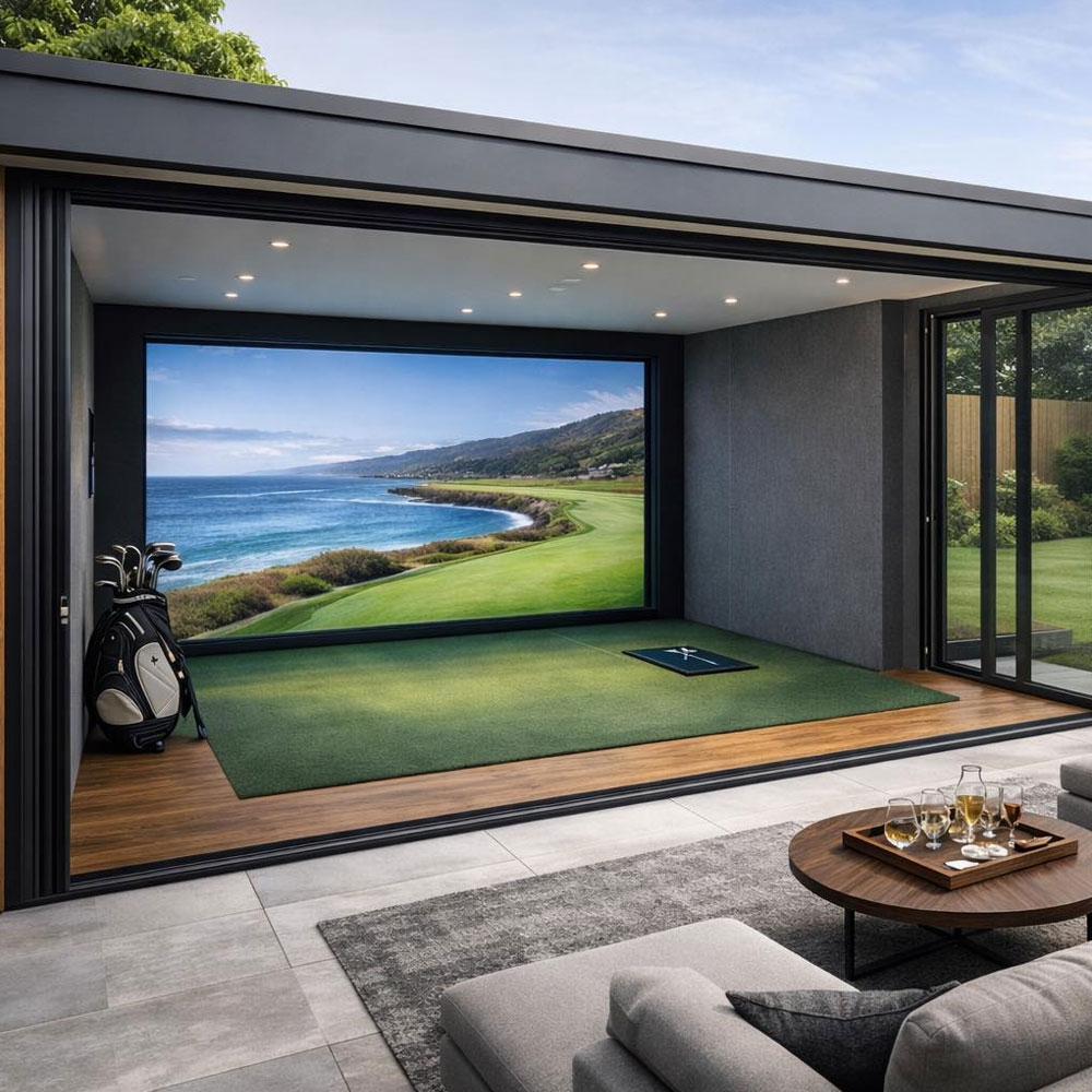 Make the switch from the course to the garden by calling Castleprime Construction Ltd. We install golf simulators into garden rooms and, as a construction and carpentry company, provide a gateway to luxury outdoor living. This service is ideally suited to golf enthusiasts, holiday park owners and AirBnB hosts but it can also be used by golf centres or by visionaries who want to take play to the newest level.